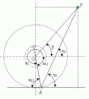 Рис. 6. Схема для расчёта динамического поля первой массы в точке Р