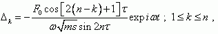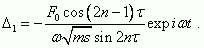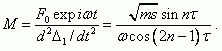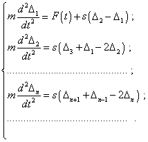 Здесь m – масса сосредоточенного элемента упругой системы, кг; s – упругость связи, Н/м F(t) = F0 exp(iωt) – внешняя периодическая сила, действующая на упругую систему, Н; 1 ≤ n ≤ ∞ .