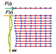 Найдя вторую производную от смещения первого элемента, мы определим его ускорение под воздействием внешней силы (внутренние силы как раз и будут изменять инерцию):