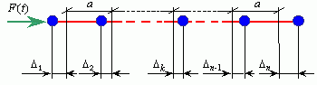 Рис. 1. Общий вид модели полубесконечной упругой линии с сосредоточенными массами {4, c. 17}