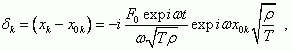 где δk – смещение бесконечно малого элемента упругой линии с координатой xk0 под действием внешней периодической силы; ρ – плотность упругой линии, кг/м; Т – натяжение линии, Н. Решение для точки контакта получим при xk0 = 0. При этом, смещение свободного конца полубесконечной линии, на который воздействует сила, будет определяться выражением
