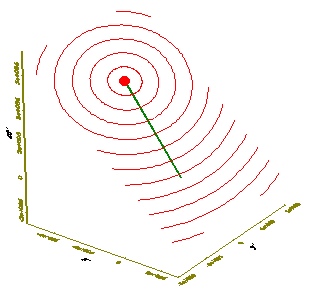 Рис. 6. Динамическая диаграмма эквифазных поверхностей, распространяющихся от движущегося источника со скоростью v = 0,8c с точки зрения покоящегося наблюдателя