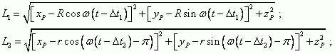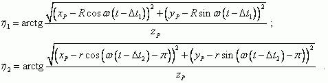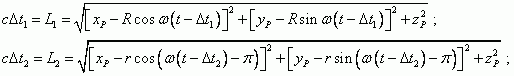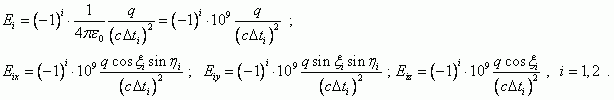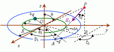 где Δt1 , Δt2 – комплексное запаздывание, определяемое временем прохождения возбуждения поля от мгновенного положения заряда к точке Р по пути АР.