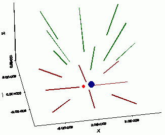 Для исследования трёхмерной модели поля мы, прежде всего, несколько упростим задачу, воспользовавшись вышеуказанным обстоятельством эквивалентности структуры динамических полей, независимо от их физической природы. Упрощение сводится к тому, что при моделировании гравитационного поля требуется выделение динамической компоненты из общего гравитационного поля. В динамическом электрическом поле эта операция излишня, что существенно облегчает моделирование без ограничений выводов о структуре самого поля. Поэтому проведём моделирование на бинарной системе синхронно вращающихся электрических положительного и отрицательного зарядов.